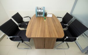 - Прежде всего, оцените размеры вашей будущей переговорной комнаты: на какое количество человек она должна быть рассчитана? От этого будут зависеть габариты и количество мебельных изделий.