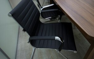 Кресла для переговорной должны быть удобными, устойчивыми и долговечными. Чаще всего дополнительную устойчивость их конструкции обеспечивает монолитный каркас и металлическое основание в виде опор-полозьев, но никто не запрещает выбирать для переговорной кресла на колесах. Другая важная и удобная деталь: регулируемые подлокотники и спинки.